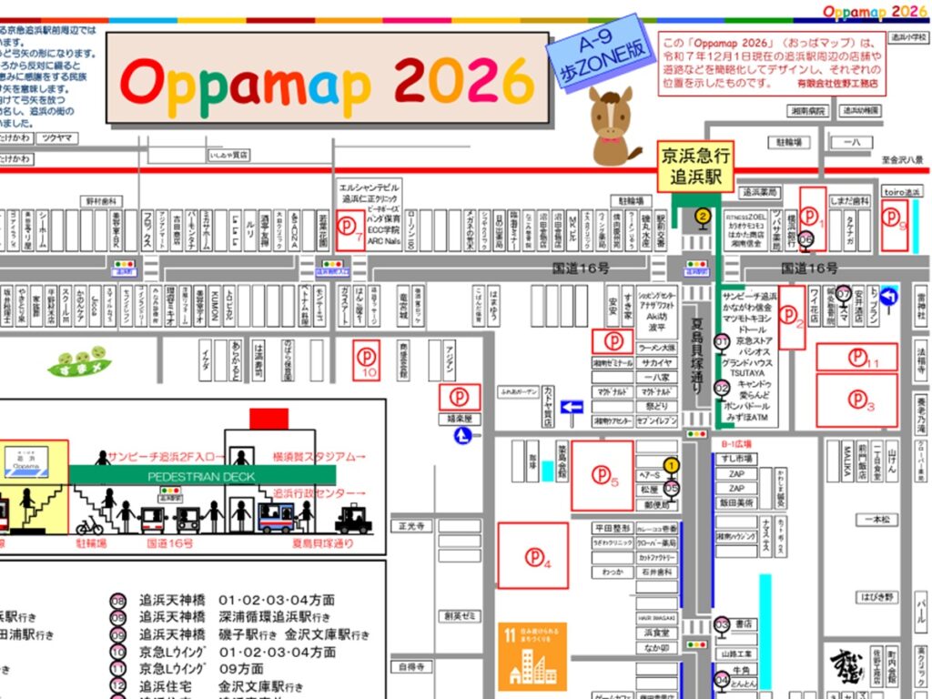 「Oppamap2026」は、今後計画されている追浜駅前の再開発による建物解体が追浜の商店街に変化を及ぼしています。駅前を中心に数多く点在するコインパーキングの料金の見直しも行われたようです。しかし、何と言っても、日産自動車の業務縮小は追浜の街にとってショッキングな出来事でしたが、国や市などで計画している追浜駅前のバスターミナル建設や国道357号線の延伸工事などの計画は粛々と進められているようです。
