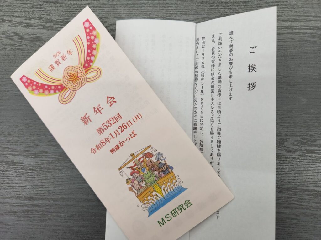 1月26日(月)、追浜地区の建設業を中心としてスタートした異業種の勉強会「MS研究会」の第532回1月例会は新年会です。